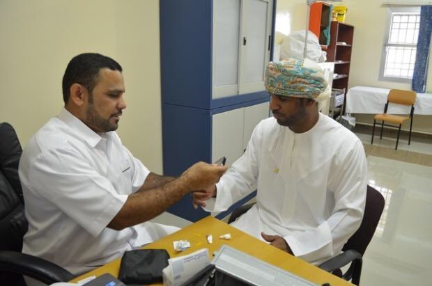 حملة "افحص واطمئن " استهدفت بعض طلاب المدرسة والمعلمين والعاملين في المدرسة لفحص ضغط الدم والسكري والطول مع الوزن لاحتساب كتلة الجسم .